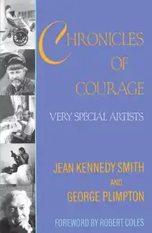 Chronicles of Courage: Very Special Artists was written by Ambassador Jean Kennedy Smith[1][2] with George Plimpton (co-founder of the Paris Review) and published by Random House in April 1993. In 1974, Smith founded Very Special Arts, an educational affiliate of the Kennedy Center that provides opportunities in the creative arts for persons with disabilities in the United States and around the world. In February 2011, President Obama awarded her the Presidential Medal of Freedom,[3] the nation’s highest civilian honor, for her work with people with disabilities.