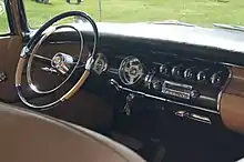 The car's "100-Million Dollar Look" styling can be attributed as much to the Chrysler parts bin as designer Virgil Exner. The front clip, including the grille, was taken from the Imperial of the same year, but the rest of the car did not look like an Imperial. The midsection was from a New Yorker hardtop, with a Windsor rear quarter. Exner also included base-model Chrysler bumpers and removed many exterior elements such as back-up lights, hood ornament, side trim, and exterior mirrors. An electric clock and two-speed windshield wipers were standard.[6] There were few options available including selection of three exterior colors of Black, Tango Red or Platinum White[10] and only one color of tan leather interior. Power windows and power front seat adjustment were available but air conditioning was not available in 1955.