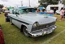 A revised Royal, the AP2 was introduced in late 1958.[5] This series featured a new grille and unusual rear styling with additional "saddle fins" grafted on to the exiting tailfins.[5] The AP2 was available as a Royal four-door sedan, a Plainsman four-door station wagon, and the new Wayfarer two-door coupé utility.[2] The unrelated Dodge Wayfarer lent its name to this version. The Plainsman station wagon was dropped from the range during the AP2 series.[2] The choice of six-cylinder and V8 engines continued, with the V8 identified by a V shaped emblem in the grille and a small V8 badge on the rear quarter.