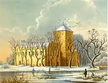 The village was first mentioned in 1295 as Chudow attested in the Latin manuscript Liber fundationis episcopatus Vratislaviensis. Chudów was a privately owned medieval manor purchased in 1532 by the Roman-German Silesian nobility House of Saszowski family,[2] who already owned the neighbouring manor of Gierałtowice.[3][4] Chudów is famous for its 16th-century Renaissance castle residence, built by the nobleman and scion John Saszowski von Geraltowitz (alias Geraltowsky in German, Gierałtowski in Polish).[3][4][5] The village remained part of the House of Saszowski estates and a residence of its branch scions alias Geraltowsky von Geraltowitz (in Polish: Gierałtowski z Gieraltowic) until it was sold in the first half of the 17th century.[4][5] Historical sources say, it was one of the most magnificent castle residences in Upper Silesia, host to many banquets and sport hunting activities of the aristocracy, in later times even included its own castle brewery and inn.[4][5] The original entrance to the castle was via a drawbridge over the moat, which lead directly to the second floor of the castle tower.