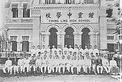 Ko was a poet and was employed as an English translator by the Straits government. His tenure laid the importance of both Chinese and English as standard subjects, combining the best of two into a mixed curriculum system. English classes were introduced for the first time to raise the language standards of the students for practical usage. This system is still widely implemented in the school today.[16] In 1924, he established a new motto for the high school: 誠愛 (English: Honesty and Love or Honesty and Passion). The high school had 182 students and 9 teachers, covering five different grades, ranging from two years of pre-secondary education to three years of lower-secondary education. Early education reports at the time recorded the school's tuition fees at 4 yuan for lower-secondary courses and 2-and-a-half yuan for pre-secondary courses. Ten percent of the students were exempted from payment. Entrance exams, on the other hand were paid by the Board of Governors.[17] The following year, to counter the ever-expanding enrollment, an expansion was made on the campus, involving two buildings east of the site. They were donated by the trust-holders of the trustee of the late Phuah Hin Leong (1844–1901).[18] In October 1926, the school published its first annual. In May 1927, Ko resigned from health issues. He was replaced by Tang Tong Hou, who resigned in February 1929 to return to China.[11] Ooi Cheow Cheng (1887–1962, alias Zao Liu) became the new provost in August 1930. Ooi, a student of the Nanyang Public School (1896–1904) from Haimen, was the founder and the first headmaster of the Haimen Middle School in Jiangsu, but was forced to resign amidst student protests and left China for Malaya shortly after. In December 1930, Chung Ling Old Boys Association, the first alumni organisation for the school was formed at Abu Siti Lane.[19][20] During Ooi's tenure as provost, the campus underwent some extensions under efforts by the Old Boys Association and the Board of Governors. Ooi resigned in June 1931 to visit his family in China. His return to China was not welcomed and promptly moved to Shanghai to work as a librarian in the library of Shanghai Jiao Tong University (SJTU).[21][22]