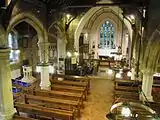 The tower is 43 feet (13 m) high and 10 feet (3 m) wide and was added in the 15th century replacing part of the south aisle.[10] The church was renovated in the late 19th century[11][12] with the tower being rebuilt from well cut sandstone blocks. At this time the organ was installed[13] and was believed to have been from Chicksands Priory.[10]