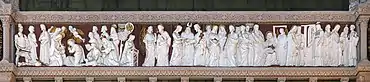 The most spectacular work of Carli Petrucci is unquestionably the monumental frieze of The Apotheosis of the Virgin Mary, installed in 1927. It presents 27 paintings depicting the life of the Blessed Virgin, religious institutions and the bishops of Montreal as well as the founders of this city.
