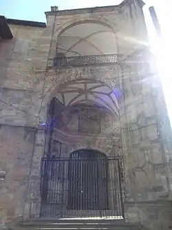 The church contains a façade in the 16th-century Renaissance style, not of Gothic style of the rest of the building. This is owing to the repeated reconstructions to the church, with each reconstruction contributing new features characteristic of that epoch.