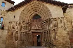 The Church of San Bartolomé (Spanish: Iglesia de San Bartolomé) is the oldest church of Logroño, Spain. Its construction dates back to the 12th century, so partly preserves Romanesque style in the head and in the initial part of the tower, and continues during the 13th century, with the Gothic style development, building the magnificent arched portal, which contains some Romanesque sculptures that tell the life of saint Bartholomew and other Bible passages.
