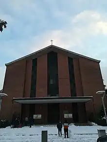 A committee was formed to screen the project, which was entrusted to engineer Claudio Latocca[3] and carried out with the collaboration of architects Olgiati and Sartorio.De Carli (1994, p. 141) The work was supported through collections and offerings of gold from the faithful.[4] In addition, the parish proceeded to sell some areas of the land it owned, which it had received as a donation from benefactress Catina Cornelio.[5] On March 3, 1957, Cardinal Giovanni Battista Montini, archbishop of Milan, laid the foundation stone,[6] and work continued until 1961, when it was completed. The initial project also included the construction of a "Parish Works Center," connected to the church through a portico, and a bell tower, both of which were never built.[3] On March 19, 1961, the church was blessed by Monsignor Mario Civelli, a missionary bishop in China of Balsamese origin, who celebrated the first Mass.[6] On the occasion of the celebration of Corpus Christi, the date of the consecration of the church by Cardinal Montini was announced, which was held on June 3, 1961.[7] Subsequently, Don Carcano arranged for the placement of the paintings depicting the Stations of the Cross.[8]