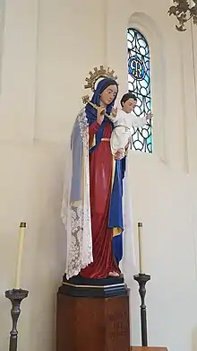 During this period, the church began to use incense and installed a large statue of the Blessed Virgin Mary (now in the south aisle of the church). Newspaper accounts of the time relate that the installation was controversial. A chip in the statue's toe shows evidence of a hammer attack made by those hostile to Catholicism.[1][2]