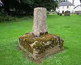The stoup outside and immediately to the South of the West door with a projecting broken bowl is late mediaeval. The sundial in the South wall of the chancel and incised on a block of clunch is also mediaeval. In the churchyard South of the church are the remains of a medieval cross consisting of a square base with angle stops and the bottom of shaft, square to octagonal. This was used in medieval times for preaching sermons and was destroyed following a visit from William Dowsing on 16 March 1643 because it was considered idolatrous.[4] The church has a number of stone coffin lids including in the North porch built into stone benches; various other fragments can be found about the church.[1][2][4]