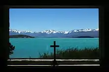 ![]() Church of the Good Shepherd with Lake Tekapo and the Southern Alps as a backdrop | |