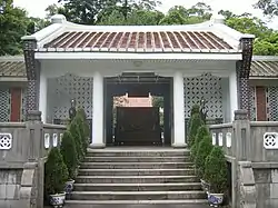 When Chiang Kai-shek's son, President Chiang Ching-kuo, died in 1988 he was also entombed in a similar fashion in nearby Touliao Mausoleum, Daxi. This gained Daxi the reputation as the “township of the Presidents”.[3] In 2004, Chiang Fang-liang, the widow of Chiang Ching-kuo, asked that both father and son be buried at Wuchih Mountain Military Cemetery in Hsichih, Taipei County. The state funeral ceremony was planned for late 2006, but due to repeated delays, no ceremony was ever held or materialized. There was public debate if another national funeral should be held again for the burial in Wuchih Mountain Military Cemetery, with fervent supporters of Taiwan independence against granting honors to someone whom they view as a dictator. However, President Chen was inclined to hold another national funeral (the first to invoke the state funeral law) but limited it to one day. Chiang Fang-liang and Soong Mei-ling had agreed in 1997 that the former leaders be first buried but still be moved to mainland China in the event of reunification. Soong Mei-ling died in 2003 and was entombed at Ferncliff Cemetery in New York. Chiang Fang-liang died in 2004 and her cremated remains were placed next to her husband's tomb at Touliao.
