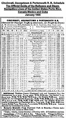 The Cincinnati, Georgetown and Portsmouth Railroad (CG&P RR) was an interurban railway serving communities in southwestern Ohio. Originally called the Cincinnati and Portsmouth, it was initially organized by Henry Brachmann in 1873.[2]