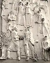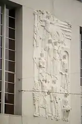 The Novo Salão High-Life building was demolished in 1944, and on the 30 September of that year, the property-owners ordered the construction of the Cinema Batalha, assigning these duties to the civil engineer Bernardino de Barros Machado.[2] The building was built between 1944 and 1947, and inaugurated on 3 June 1947.[1][2] An examination of the building's construction was performed on 27 September 1948, shortly before the first screenings by the Cineclube do Porto.[2] Due to the censorship of the time, the frescoes by Júlio Pomar and the base-relief by Américo Braga, were ordered removed.