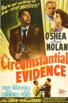 Circumstantial Evidence is a 1945 American film noir directed by John Larkin and starring Michael O'Shea, Lloyd Nolan, and Trudy Marshall.[1]