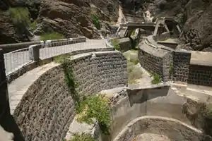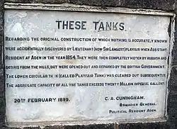 The Cisterns of Tawila, or the Tawila Tanks, is a historic site in Aden, Yemen designed to collect and store the rain that flows down from the Shamsan massif through Wadi Tawila, and to protect the city from periodic flooding. The site consists of a series of tanks of varying shape and capacity. They are connected to one another and located in Wadi Tawila to the southwest of Aden’s oldest district, Crater. Originally there were about 53 tanks, but only 13 remain following a succession of renovations, including those done by the British in the 19th century. The existing tanks have a combined capacity of about nineteen million gallons. The largest of the tanks are the Coghlan Tank at the center of the main site and the large, circular Playfair Tank, located at the lowest point, outside the main site.