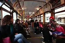 The City Circle route is operated with heritage W class trams, restored to original condition as part of the W8 upgrade. As of 2020, these are the only W-class trams on the system, and there are no plans to retire them. The City Circle trams originally sported a unique maroon livery promoting the service, however as part of the W8 upgrade the trams were restored back to their original green and cream livery. Until 2014, the City Circle was one of several routes to run W-class trams (30, 78 and 79) but the remaining routes controversially had their W-class trams removed, mostly replaced by A class. Trams display the route number 35.[18][19] The City Circle operates at a headway of 12 minutes in both directions, with the service taking approximately 60 minutes to complete a loop. Ten trams are allocated to the service at any one time (five in each direction). An average of three million passengers uses the service every year, with each tram circling the city 9 times a day, or 12 times when the tram operates to 21:00.[13] A Decision was made in late 2023 to run the trams in only one direction some passengers were a bit annoyed at this however were given the option to take the 86 or 96 trams