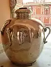 There are two huge sterling silver vessels of 1.6 metres (5.2 ft) height and each with capacity of 4000 litres and weighing 340 kilograms (750 lb), on display here. They were made from 14,000 melted silver coins without soldering. They hold the Guinness World Record as the world's largest sterling silver vessels.[12] These vessels were specially commissioned by Maharaja Sawai Madho Singh II to carry the water of the Ganges to drink on his trip to England in 1902 (for Edward VII's coronation). Hence, the vessels are named as Gangajalis (Ganges-water urns).[5][6][10][13][14]