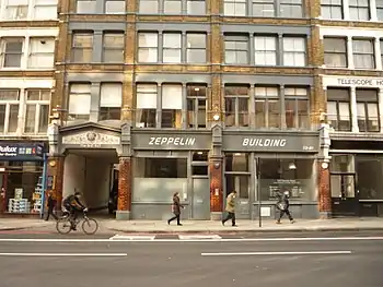 On the night of 8 September 1915, Zeppelin L13 commanded by Kapitänleutnant Heinrich Mathy attacked London, and two of his bombs hit Messrs Frank Stadelman's warehouse at 59–61 Farringdon Road. Falling masonry from the building did considerable damage to the 6th Londons' drill hall behind.[77][78]