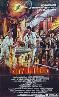 City on Fire is a 1979 disaster action film directed by Alvin Rakoff, written by Jack Hill, Dave Lewis and Celine La Freniere, and stars Barry Newman, Susan Clark, Shelley Winters, Leslie Nielsen, James Franciscus, Ava Gardner and Henry Fonda.[5] The film's plot revolves around a disgruntled ex-employee who sabotages an oil refinery, setting off a blaze that engulfs an entire city. People try to either fight the fire or flee as it spreads throughout the city.