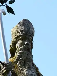According to the traditional account, Clair was sent to Nantes by Pope Linus, the successor of St. Peter, seventy years after the birth of Christ.[3] He arrived from Rome, with a nail in his possession from the cross that bore the martyrdom of St. Peter. Then he built an oratory dedicated to the Apostle, which would later become Nantes Cathedral.[4] He died in Kerbellec, village commune Réguiny (Morbihan), and his tomb (emptied since the Norman invasions in late 9th century) lies in a chapel adjoining the church of Réguiny. A votive fountain is also located on the territory of the Breton town. He is sometimes confused with the fifth century Saint Clair de Albi.