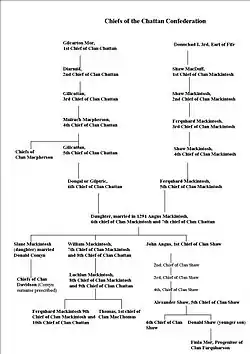 Prior to the 14th century, the Clan Chattan was a conventional Scottish clan.[5] However it evolved into an alliance or confederation of clans which was made up of