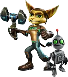 Ratchet and Clank are the protagonists of the Ratchet & Clank video game series developed by Insomniac Games, starting with the 2002 Ratchet & Clank. Ratchet is an anthropomorphic alien creature known as a Lombax, while Clank is an escaped robot (real name: XJ-0461 or Defect B5429671) who soon teams up with him.