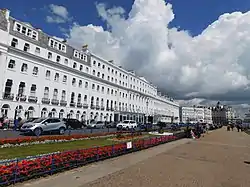 The Grade II* listed 70-room hotel adjoined the 159-room Burlington Hotel to form a grand white-washed row known as the Grand Parade.[4] Both hotels were originally terraced houses, with the Burlington spanning 13 houses.[5]