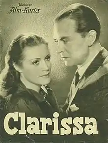 Clarissa is a 1941 German romance film directed by Gerhard Lamprecht and starring Sybille Schmitz, Gustav Fröhlich and Gustav Diessl.[1] Schmitz plays the domineering manager of a bank who eventually falls in love with one of the other employees.