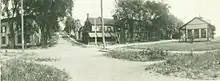 A historic photograph taken in the early twentieth century depicts President Theodore Roosevelt before the porch of the Miller Hotel. From the 1950s to its abandonment in the 1980s, the former Clark–Dearstyne–Miller Inn was operated as a neighborhood tavern. Although the historic building currently is vacant, it is an important example of an unusual building type that remains a significant link to the early history of Bath-on-Hudson."[2]
