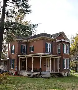 The Clark House is a historic building located in Iowa City, Iowa, United States. This property was originally part of Plum Grove, the estate of Iowa's first Territorial Governor, Robert Lucas. This lot was eventually sold to Florence A. Clark in 1870. She was a granddaughter of Governor Lucas, and her husband, Augustus L. Clark, was a direct descendant of a signer of the Declaration of Independence, Abraham Clark.[2] Built in 1874, the house is a transitional style from the simplicity of Plum Grove to the richness of the Victorian. The 2½-story brick Italianate has an L-shaped main block and a 1½-story wing off the back. The main block is capped with a hip roof with gable ends and bracketed eaves. It also has a wrap-around porch. The house was listed on the National Register of Historic Places in 1996.[1]