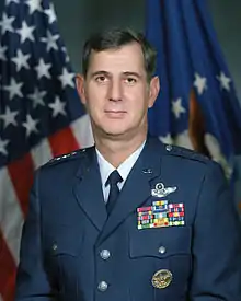 After completing undergraduate pilot training, he flew the C-124 Globemaster with the 17th Air Transport Squadron at Charleston AFB, South Carolina and saw combat in Vietnam with the 12th Special Operations Squadron. He later served as chief of operations and training for the 1402d Military Airlift Squadron at Andrews AFB, Maryland and commanded both the 438th Military Airlift Group at McGuire AFB, New Jersey and the 63d Military Airlift Wing at Norton AFB, California. His staff tours included tactical intelligence officer and division chief at Headquarters Tactical Air Command; Directorate of Doctrine and Concepts on the Air Staff at the Pentagon; deputy chief of staff for plans at Headquarters Military Airlift Command at Scott AFB, Illinois; director of budget at Air Force Headquarters and senior military assistant to the Deputy Secretary of Defense. He was named Comptroller of the Air Force in 1986 and retired in June, 1989.[2]