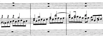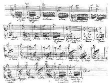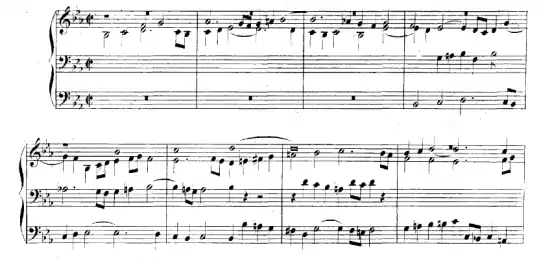 Examination of the original manuscript suggests that the Kyrie-Gloria and larger catechism chorale preludes were the first to be composed, followed by the "St Anne" prelude and fugue and the manualiter chorale preludes in 1738 and finally the four duets in 1739. Apart from BWV 676, all the material was newly composed. The scheme of the work and its publication were probably motivated by Georg Friedrich Kauffmann's Harmonische Seelenlust (1733–1736), Conrad Friedrich Hurlebusch's Compositioni Musicali (1734–1735) and chorale preludes by Hieronymus Florentinus Quehl, Johann Gottfried Walther and Johann Caspar Vogler published between 1734 and 1737, as well as the older Livres d'orgue, the French organ masses of Nicolas de Grigny (1700), Pierre Dumage (1707) and others.[8][9] Bach's formulation of the title page follows some of these earlier works in describing the particular form of the compositions and appealing to "connoisseurs", his only departure from the title page of Clavier-Übung II.[10]