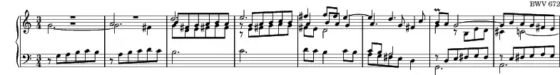 In its use of modal forms, motet-style and canons, it looks back to the religious music of masters of the stile antico, such as Frescobaldi, Palestrina, Lotti and Caldara. At the same time, Bach was forward-looking, incorporating and distilling modern baroque musical forms, such as the French-style chorale.[1]