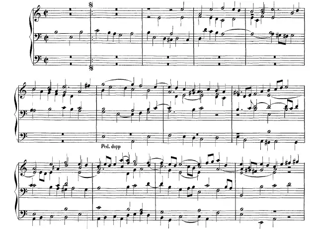 When Johann Sebastian Bach seated himself at the organ when there was no divine service, which he was often requested to do, he used to choose some subject and to execute it in all the forms of organ composition so that the subject constantly remained his material, even if he had played, without intermission, for two hours or more. First he used this theme for a prelude and fugue, with the full organ. Then he showed his art by using the stops for a trio, quartet, etc., always upon the same subject. Afterwards followed a chorale, the melody of which was playfully surrounded in the most diversified manner with the original subject, in three or four parts. Finally the conclusion was made by a fugue, with the full organ, in which either another treatment only of the first subject predominated, or one or, according to its nature, two others were mixed with it.