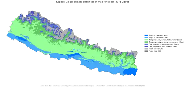 - ↑ "Observed Climate Trend Analysis in the Districts and Physiographic Regions of Nepal (1971-2014)" (PDF). Department of Hydrology and Meteorology, 2017. Archived (PDF) from the original on 2020-08-28. Retrieved 2020-11-26.