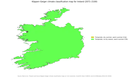Predicted Köppen climate classification map for Ireland for 2071–2100
