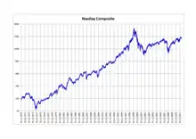 This article is a summary of the closing milestones of the Nasdaq Composite, a United States stock market index. Since first opening at 100.00 on February 5, 1971, the Nasdaq Composite has increased, despite several periods of decline, most recently after the financial crisis.