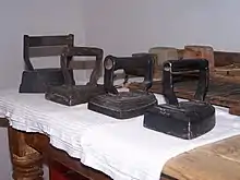 - ↑ "Du Fer a Repasser" [The smoothing iron]. Musée du Lavage et du Repassage (Museum of Washing and Ironing) (in French). Retrieved 27 May 2016.