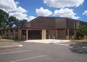 Slightly further south, on the site of the former Marion High School, sits Cosgrove Hall – the original school hall and gymnasium.[19] The hall can be hired for a variety of purposes, and the site includes the Graham Watts Playground (completed in February 2006, and named after the long-serving local councillor),[26] a basketball net and undercover seating. The hall can be found on the corner of York Street and Scott Avenue.[25] (Officially opened September 2007). Cosgrove Hall is also the unofficial home of Zero1 Pro Wrestling Australia who run professional wrestling events at the Hall.[27]