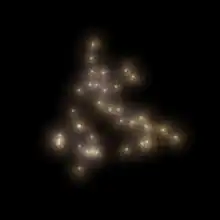 Lying at a distance of 9.5 billion light years away, the CCLQG is a cosmic decoupling of 34 individual quasars (highly luminous active galactic nuclei powered by supermassive black holes) spanning a region roughly 2 billion light-years in length, and about 1 billion light years wide, making it one of the largest and most exotic cosmic structures known in the observable universe. It was named U1.28 because of its average redshift of 1.28, and is located in the constellation of Leo.[4] It was also notable because it is located in the ecliptic, the line where the Sun seems to travel in the entire year. It was 1.8 billion light-years away from the Huge-LQG, a group of 73 quasars discovered in 2012.[1][2]