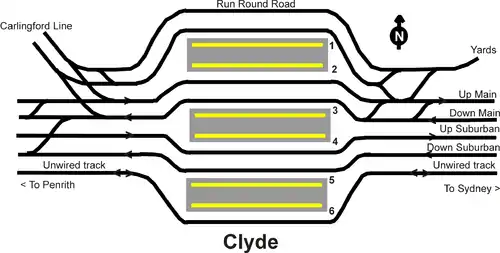 On 17 November 1888, Clyde became a Junction station with the opening of the Carlingford line to Rosehill. As part of the Parramatta Light Rail project, the Carlingford line closed on 5 January 2020.[4]