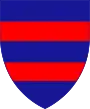 Dubrovnik region – Coat of arms of Dubrovnik: Azure, two bars gules – Two red stripes on a dark blue shield. This is a simplified variation of the Coat of arms of Dubrovnik, with two red bars instead of four; it was used by Dubrovnik Republic since the 14th century. The original coat of arms is the old coat of arms of Árpád dynasty, granted to Dubrovnik Republic by King Louis I in 1358 as it became a vassal of the Hungarian-Croatian king.[18][19][20][21][22] The red-blue variant hails from the 1950s interpretation of the template (decorative) lines within the originally white lines of the original CoA.[23][24] | |