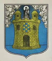 - ↑ Escutcheon based on both the text and the drawing of the royal decree of March 31, 1678, granting the coat of arms.