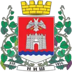 Small coat of arms is just shield with eagle, Niš Fortress and Nišava river in Serbian colors (red, blue, white).[2]