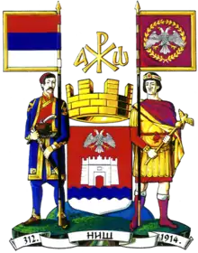 BlazonNiš fortress, Nišava river and Serbian eagle