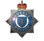 The seal of the clerk of the peace of the county bore the Heraldic shield, as did the badges of the East Sussex Constabulary and the Sussex Yeomanry.[3][4]