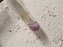 Cobalt(II) hydroxide precipitates as a solid when an alkali metal hydroxide is added to an aqueous solution of Co2+ salt.[4] For example,
