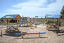 The Eyre Telegraph Station, located 49 km south of the settlement, operated from 1897 until 1929. Unlike most others, it remained in a relatively well-preserved state due to its isolation and protection from the Southern Ocean, and in 1976, when the State Government created the Nuytsland Nature Reserve, the building became the Eyre Bird Observatory, which opened in 1978. The observatory offers basic camping facilities. Over 230 species of birds have been recorded there.[4]