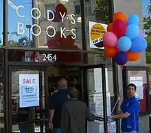 Cody's Books (19562008) was an independent bookstore based in Berkeley, California. It "was a pioneer in bookselling, bringing the paperback revolution to Berkeley, fighting censorship, and providing a safe harbor from tear gas directed at anti-Vietnam War protesters throughout the 1960s and 1970s."[1]