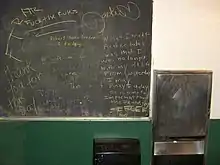 The restrooms at the Telegraph Avenue store, equipped with blackboards and chalk