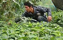 Coffee production in Colombia has a reputation for producing mild, well-balanced coffee beans.[21][22][23][24] Colombia's average annual coffee production of 11.5 million bags is the third total highest in the world, after Brazil and Vietnam, though highest in terms of the arabica bean.[25][26][27][28] The beans are exported to United States, Germany, France, Japan, and Italy.[29] Most coffee is grown in the Colombian coffee growing axis region, while other regions focus on quality instead of volumes, such as Sierra Nevada de Santa Marta. In 2007, the European Union granted Colombian coffee a protected designation of origin status.[30] In 2011, UNESCO declared the "Coffee Cultural Landscape" of Colombia, a World Heritage site.[31]